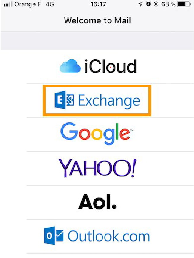 • pour iOS 7, 8, 9 et 10 : appuyez sur Mail, Contacts, Calendrier, puis sur Ajouter un